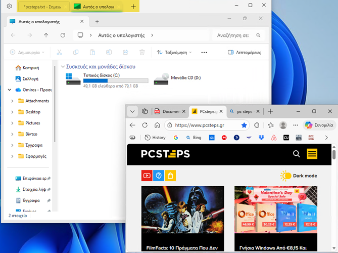 Για παράδειγμα, σε ένα παράθυρο μπορούμε να έχουμε ανοιχτά έναν φάκελο, ένα πρόγραμμα περιήγησης και ένα αρχείο PDF, ενώ σε ένα άλλο στιγμιότυπο να έχουμε ένα έγγραφο Word και τον φάκελο «Λήψεις».