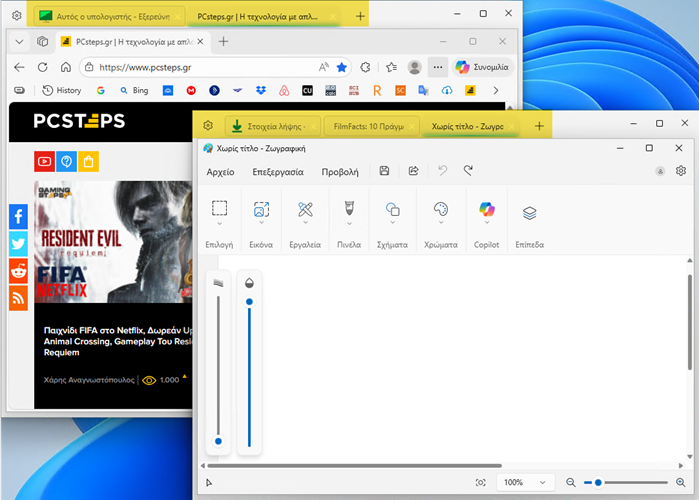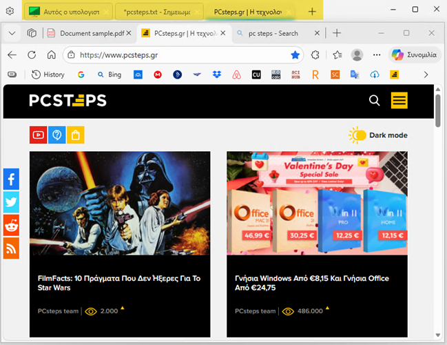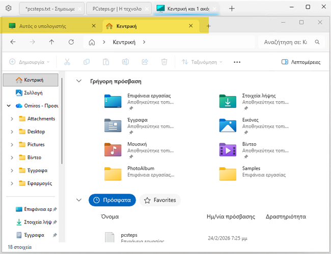 Μπορούμε επίσης να σύρουμε τις καρτέλες αριστερά ή δεξιά για να τις αναδιατάξουμε όπως μας εξυπηρετεί. Η λειτουργία είναι ακριβώς όπως σε ένα σύγχρονο πρόγραμμα περιήγησης.