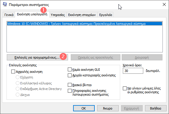 Εκεί πηγαίνουμε στην καρτέλα “Εκκίνηση υπολογιστή” και ανοίγουμε τις “Επιλογές για προχωρημένους”.