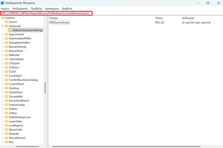 Στη συνέχεια, αντιγράφουμε την ακόλουθη διαδρομή, την κάνουμε επικόλληση στη γραμμή διευθύνσεων του Μητρώου των Windows, και πατάμε Enter.