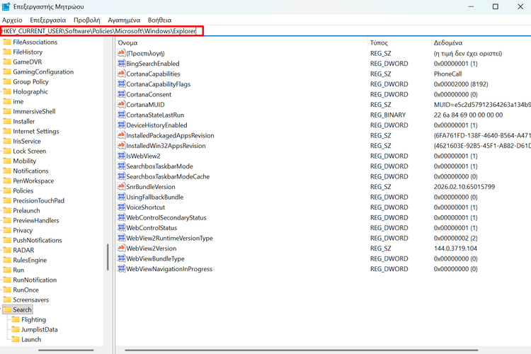 Πώς απαγορεύω στα Windows 11 να κάνουν αναζητήσεις στο web από την Έναρξη