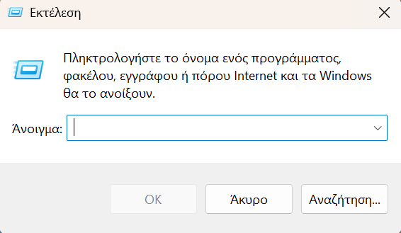 Αρχικά, πατάμε τα πλήκτρα “Win + R” για να ανοίξουμε το παράθυρο της Εκτέλεσης.