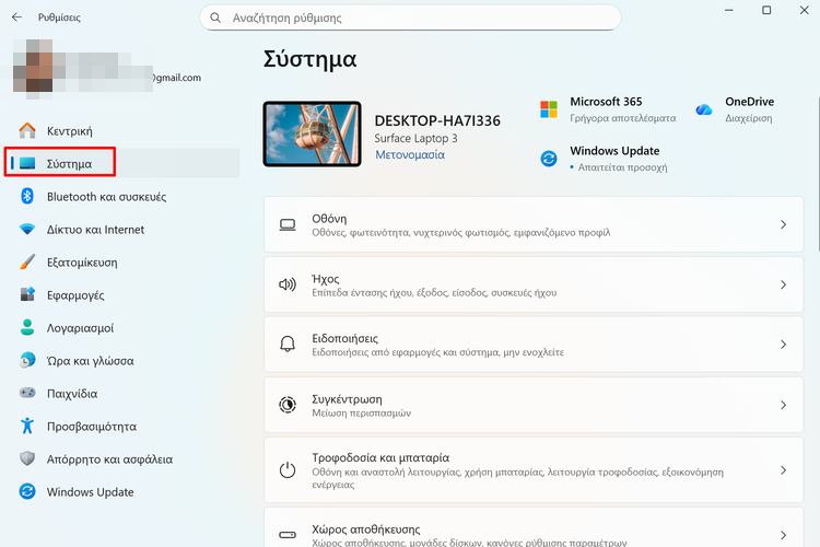 Έπειτα, κάνουμε κλικ στο “Σύστημα”.