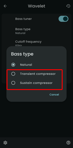 Τέλος, αν θέλουμε περισσότερη ένταση στα μπάσα, χρησιμοποιούμε το “Bass tuner” με τη λειτουργία “Transient compressor” για μουσική ή “Sustain compressor” για ταινίες.