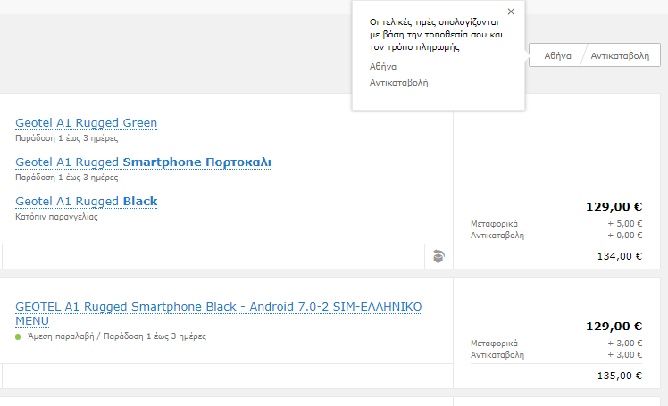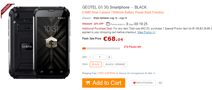 Την ώρα που γράφουμε αυτή την προσφορά, GEOTEL G1 δεν είναι διαθέσιμο στην ελληνική αγορά. Ωστόσο, ο μικρότερος αδερφός, το GEOTEL Α1 που έχει κατώτερα χαρακτηριστικά και μπαταρία στα 3400mAh, είναι διαθέσιμο στα ελληνικά καταστήματα στο διπλάσιο κόστος αγοράς.