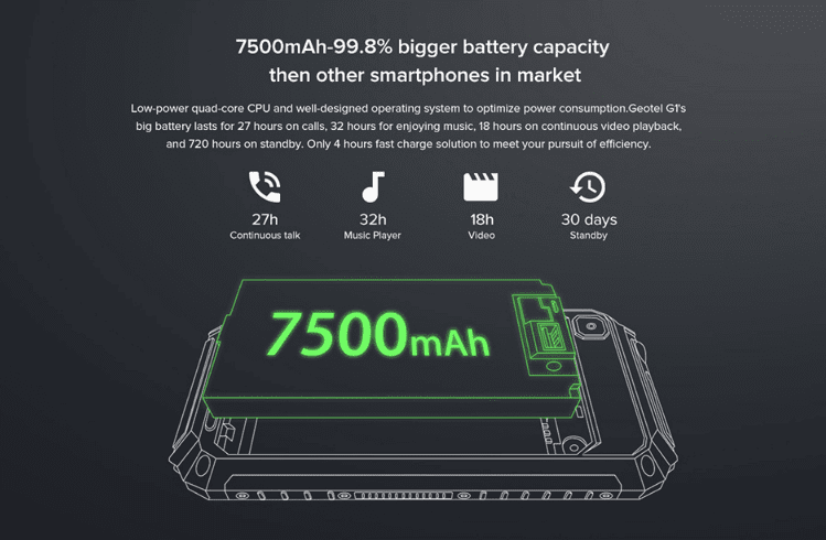 Η θωρακισμένη κατασκευή, και ιδίως η τεράστια μπαταρία του κινέζικου κινητού καλύπτουν όλες σχεδόν τις ανάγκες στις σκληρές εξωτερικές συνθήκες εργασίας, και όχι μόνο, χωρίς να χρειαστεί να πληρώσουμε πολλά χρήματα.