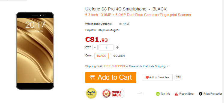Η τιμή του Ulefone S8 Pro ανέρχεται στα €81.93. Συνοδεύεται από θήκη της εταιρείας και μπορούμε να το παραγγείλουμε από εδώ. Οι αποστολές στην χώρα μας θα ξεκινήσουν στις 29 Αυγούστου.