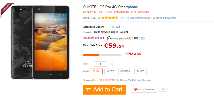 Το προηγούμενο μοντέλο Oukitel C4 με μικρότερη μνήμη, αλλά και πολύ κατώτερα χαρακτηριστικά, κοστίζει πάνω και από την διπλάσια τιμή της προσφοράς του Gearbest στο νέο μοντέλο.