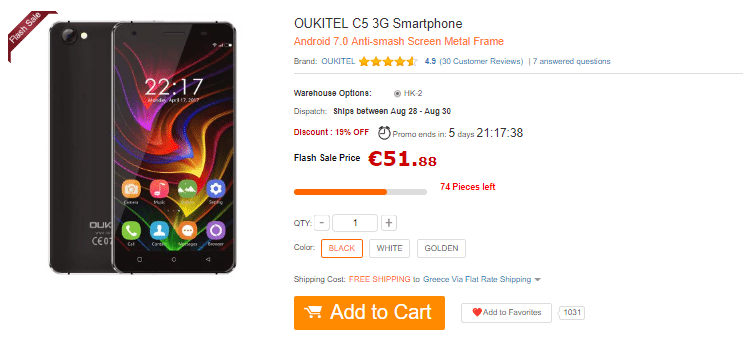 Το OUKITEL C5 3G κοστίζει μόνο €51.88 για ελάχιστες ημέρες. Μπορούμε να το αγοράσουμε από εδώ. Συνοδεύεται από θήκη σιλικόνης.