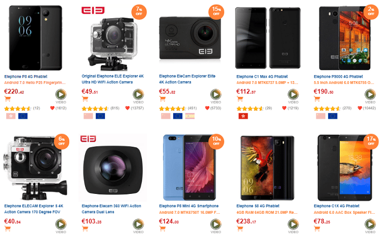 Μπορούμε να δούμε όλες τις προσφορές σε smartphone, phaplet και smartwatch Elephone σε αυτή την σελίδα του Gearbest.