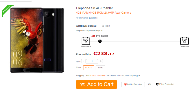 Το Elephone S8 4G κοστίζει €238.17 για προπαραγγελία, ωστόσο, μπορούμε να το αγοράσουμε από εδώ, ακόμη πιο φθηνά στα €204.14 με το ακόλουθο κουπόνι: