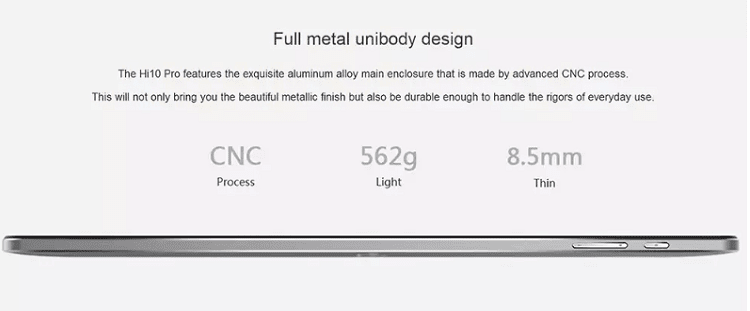Το κινεζικό notebook διακρίνεται για την 10,1 ιντσών οθόνη αφής IPS, με ανάλυση στα 1920 x 1200 (WUXGA), καθώς επίσης και για την μεταλλική κατασκευή, αλλά και τον εξαιρετικά κομψό σχεδιασμό.
