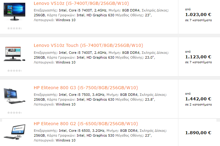 Διαμέσου του ελληνικού καταστήματος μπορούμε άμεσα να γνωρίζουμε κατά προσέγγιση τις τιμές του hardware που απαρτίζει το κινέζικο AIO PC.