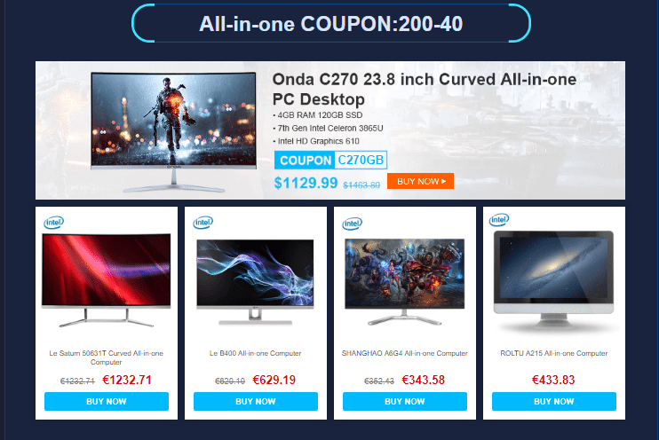 Οι τρέχουσες προσφορές για τα All-in-one Computer είναι διαθέσιμες με κουπόνι στο διεθνές e-shop GearBest.