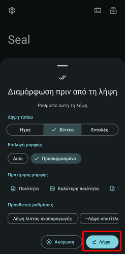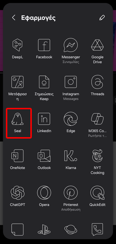Στη συνέχεια, επιλέγουμε το Seal από το μενού κοινοποίησης του Android.