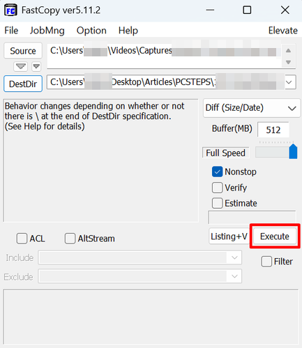Τέλος, πατάμε “Execute” και το FastCopy θα ξεκινήσει τη διαδικασία μεταφοράς.