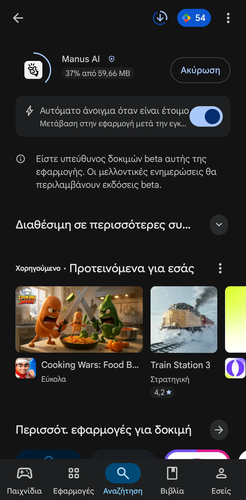 Επιπλέον, κατά την εγκατάσταση μιας εφαρμογής, πλέον βλέπουμε έναν διακόπτη που επιτρέπει το άμεσο άνοιγμα της μετά την εγκατάσταση.