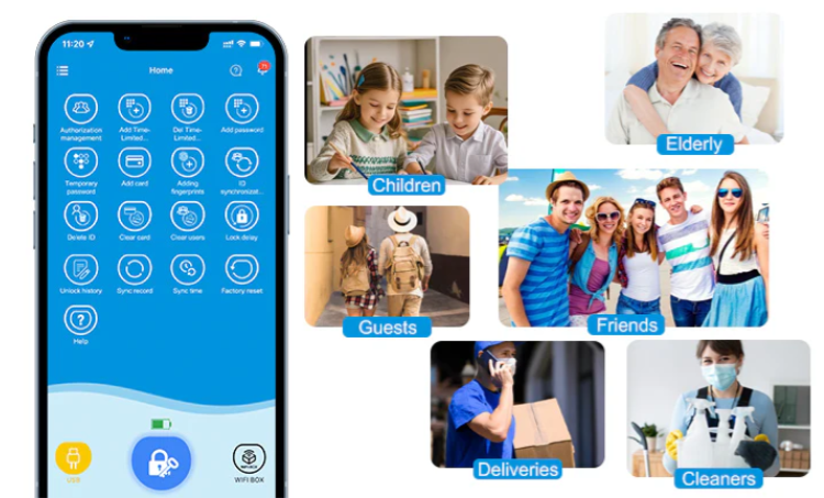 Αυτό είναι ιδανικό για σενάρια βραχυχρόνιας μίσθωσης, για επισκέπτες, oικογενειακά μέλη που έρχονται περιστασιακά, προσωπικό καθαριότητας και διανομείς, χωρίς να χρειάζεται να δώσουμε τον κύριο κωδικό μας. Όλα ρυθμίζονται και διαγράφονται από το app, χωρίς αλλαγή κλειδαριάς ή αντικατάσταση κλειδιών.