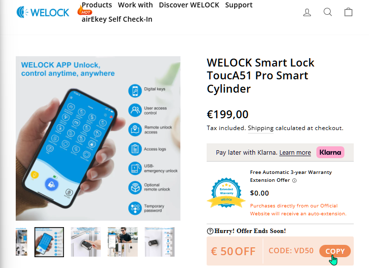 Η αγορά από το επίσημο κατάστημα, συνοδεύεται από σημαντικά προνόμια που εξασφαλίζουν την επένδυσή μας, και αυτή την περίοδο μπορούμε να αποκτήσουμε την έξυπνη κλειδαριά με το χαμηλότερο δυνατό κόστος αγοράς.