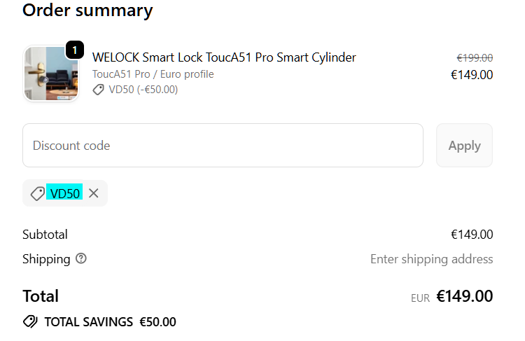 Έτσι, απλά χρησιμοποιούμε τον κωδικό VD50 στο checkout στη σελίδα του προϊόντος, πατώντας αρχικά στο Copy, και αφού προσθέσουμε το προϊόν στο καλάθι, επικολλούμε τον κωδικό του κουπονιού στο σχετικό πεδίο του checkout.