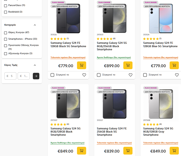 Αγορά κινητού 5G από Ελλάδα €99 έως €1.955