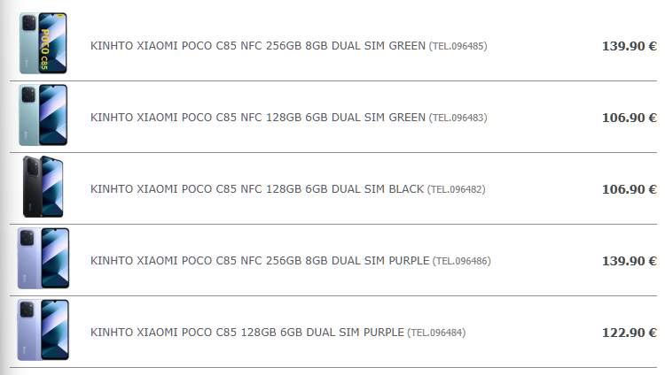 €106,90 – €139,90 Xiaomi Poco C85, 6.9”120Hz, 8GB/128GB/ 6000mAh (2025)