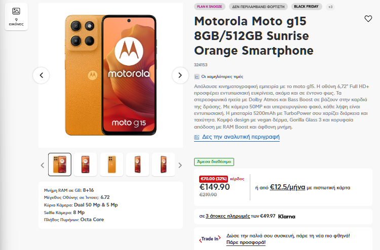 €149,90 Motorola G15 6.72″FHD+ 8GB / 512GB / 5000mAh, Android 15
