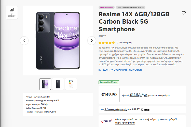 €149,90 Realme 14X, 6.67” 120Hz, 6GB / 128GB / 5000mAh