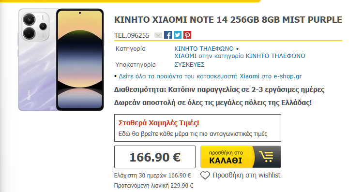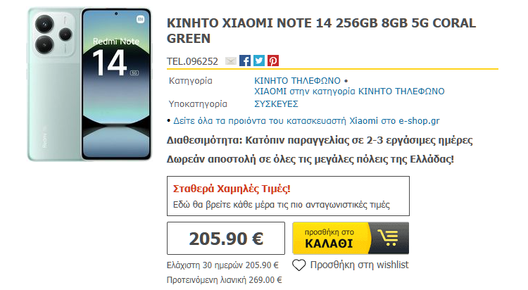 Το Xiaomi Note 14 είναι μια καλή αγορά κινητού 5G. Έρχεται με μνήμες 8GB/258GB, οθόνη 6,67″ AMOLED, (2100 nits, 1080×2400), ρυθμό ανανέωσης έως 120Hz, και μπαταρία 5110 mAh.