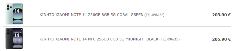 €205,90 Xiaomi Note 14, 6.67”AMOLED 120Hz, 8GB / 256GB / 5110mAh