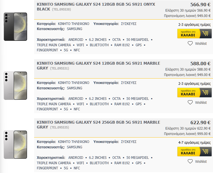 €566,00 έως €622,00 Σειρά Samsung Galaxy S24