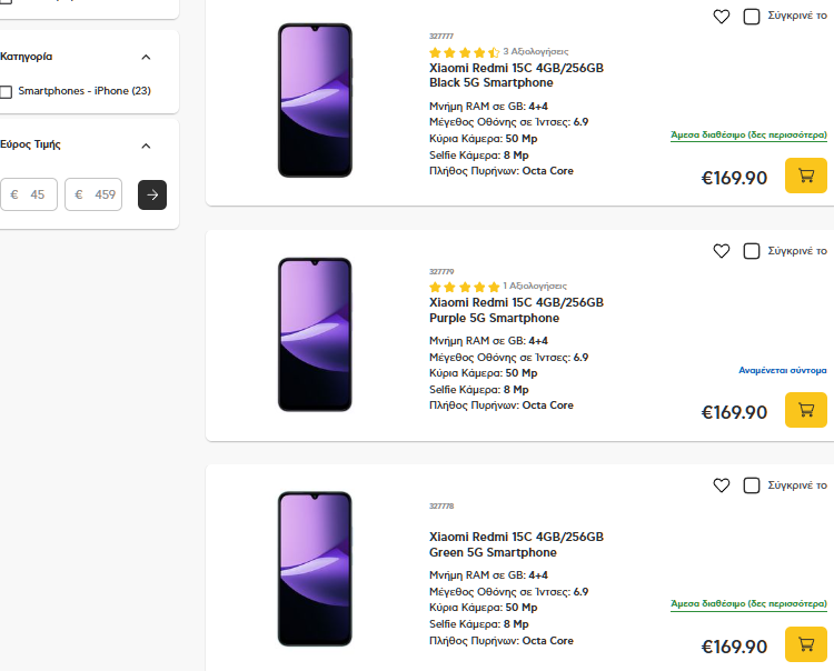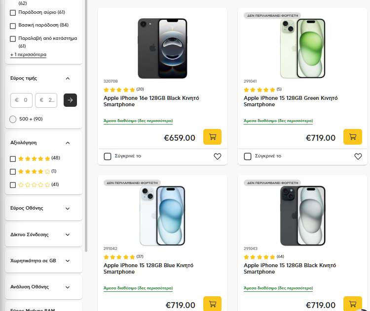 Αγορά κινητού 5G από Ελλάδα €109 έως €1.955