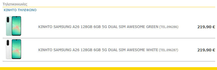 €219,90 Galaxy Α26 5G, 6.7″AMOLED