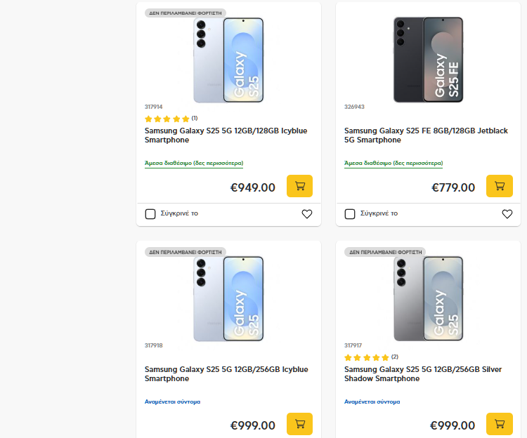Στα συνεργαζόμενα καταστήματα είναι άμεσα διαθέσιμη σε διάφορα χρώματα και εκδόσεις η 5G σειρά των Galaxy S25 της Samsung.