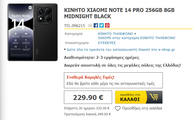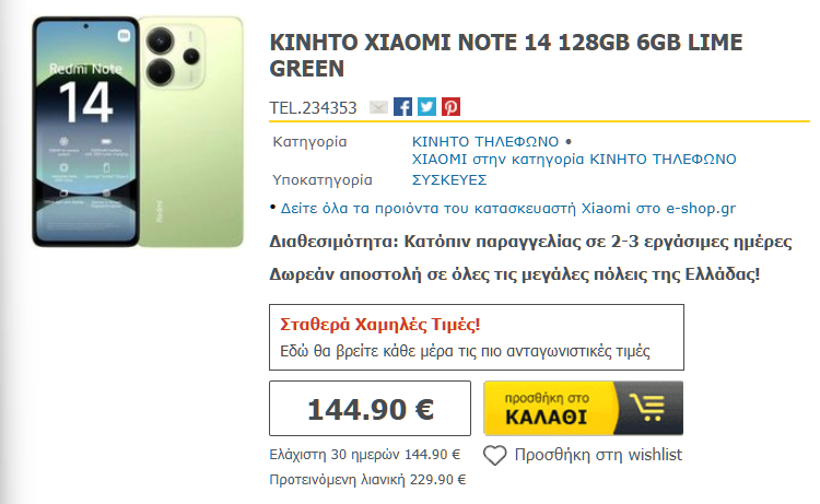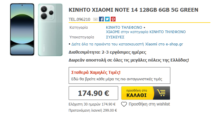 Το Xiaomi Note 14 έρχεται με μνήμες 6GB/258GB, οθόνη AMOLED 6,67″ με ανάλυση Full HD+, ρυθμό ανανέωσης έως 120Hz, και μέγιστη φωτεινότητα 2100 nits.