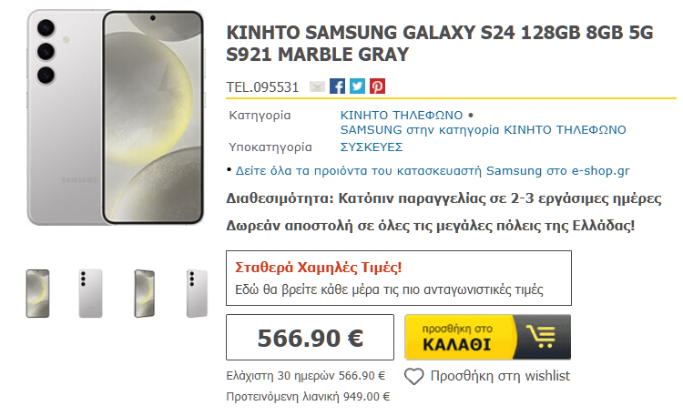 €566,00 έως €999,00 Σειρά Samsung Galaxy S24