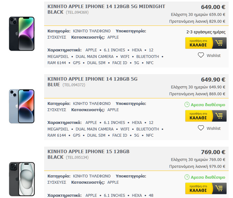 €649,00 έως €1.955 Σειρά 5G iPhone SE / 12 / 13 / 14 / 15