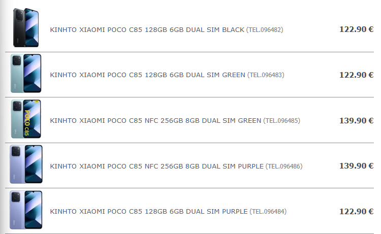 €122,90 – €139,90 Xiaomi Poco C85, 6.9”120Hz, 8GB/128GB/ 6000mAh (2025)