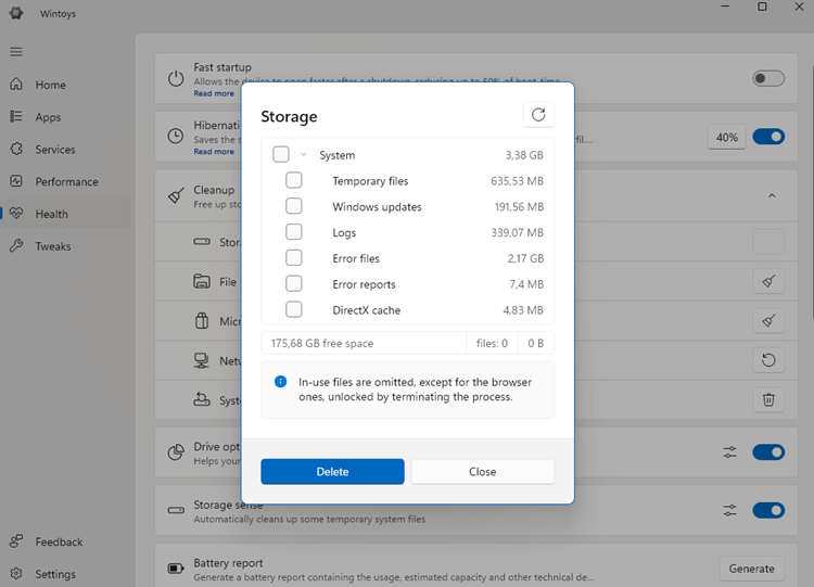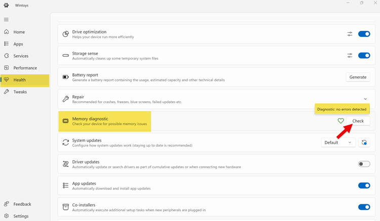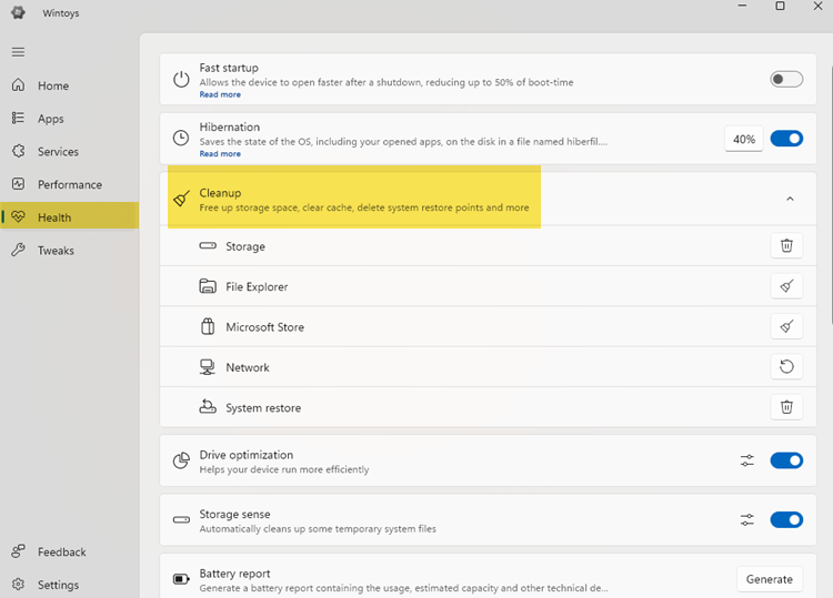 Το Wintoys προσφέρει ολοκληρωμένα εργαλεία για επιδιόρθωση και βελτίωση Windows. Στην καρτέλα Health, θα βρούμε μια από τις πιο χρήσιμες λειτουργίες του εργαλείου.