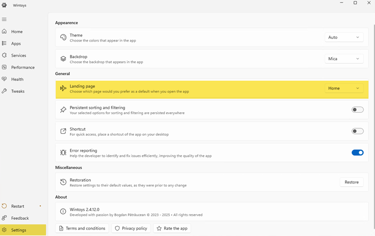 Το Wintoys είναι μια σύγχρονη, δωρεάν εφαρμογή για τη βελτίωση Windows 10 και 11, σχεδιασμένη να προσφέρει στους χρήστες έναν εύχρηστο και αποτελεσματικό τρόπο βελτιστοποίησης και προσαρμογής του συστήματός τους.