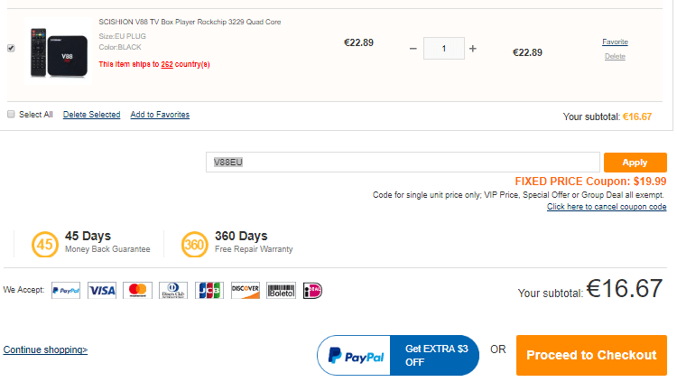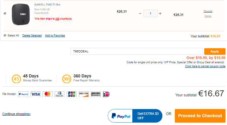 TV Box: SUNVELL T95D Android 6.0, €16.67
