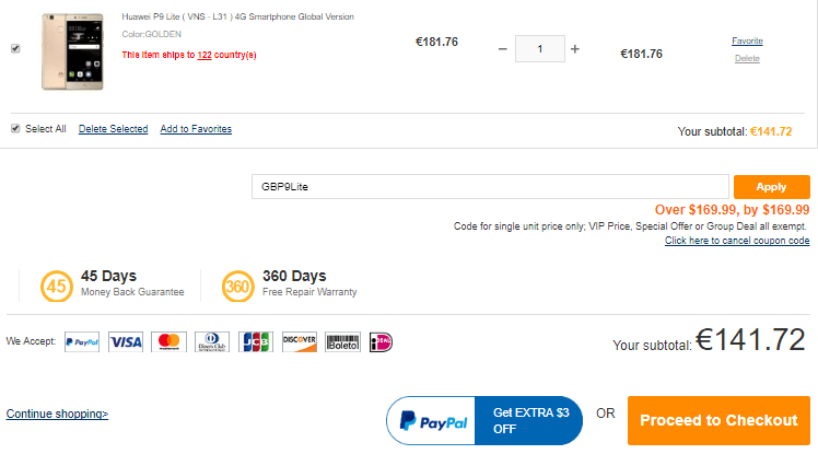 Το Huawei P9 Lite θα το βρούμε στα €141.72 για ελάχιστες ημέρες. Εκτός από δωρεάν αποστολή, υπάρχει και η Priority συν €22.34 για να αποφύγουμε το τελωνείο.