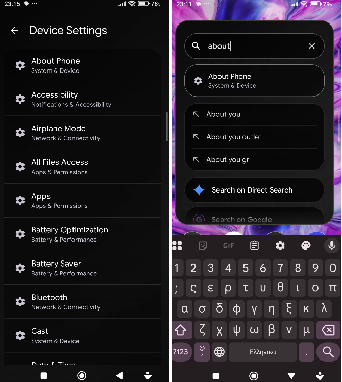 Τέλος, σε ό,τι αφορά την αναζήτηση των ρυθμίσεων που βρίσκονται βαθιά μέσα στο μενού του Android, επί του παρόντος, λειτουργεί μόνο με τις αγγλικές ονομασίες των ρυθμίσεων συστήματος.