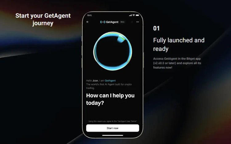 Όλο αυτό το ενοποιημένο οικοσύστημα θα ήταν δύσκολο να το διαχειριστεί κανείς χωρίς βοήθεια. Εδώ εμφανίζεται το GetAgent, το AI προϊόν της Bitget. Η ίδια το χαρακτηρίζει ως το πρώτο all‑in‑one AI assistant αποκλειστικά για crypto trading.