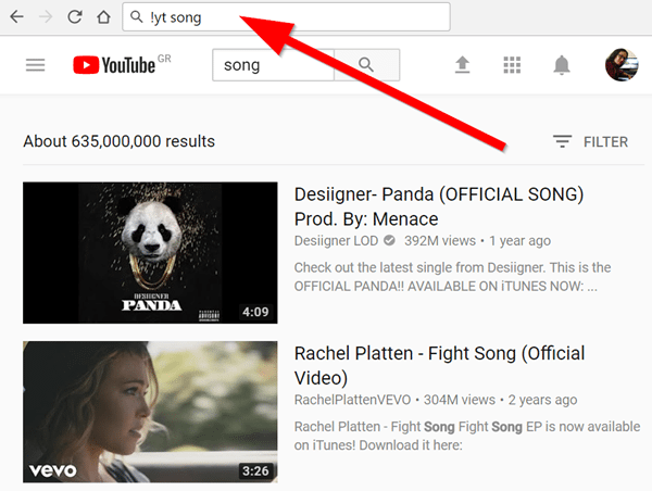 Για παράδειγμα, αν θέλουμε να ψάξουμε κάποιο τραγούδι στο YouTube, γράφουμε “!yt όνομα τραγουδιού”.