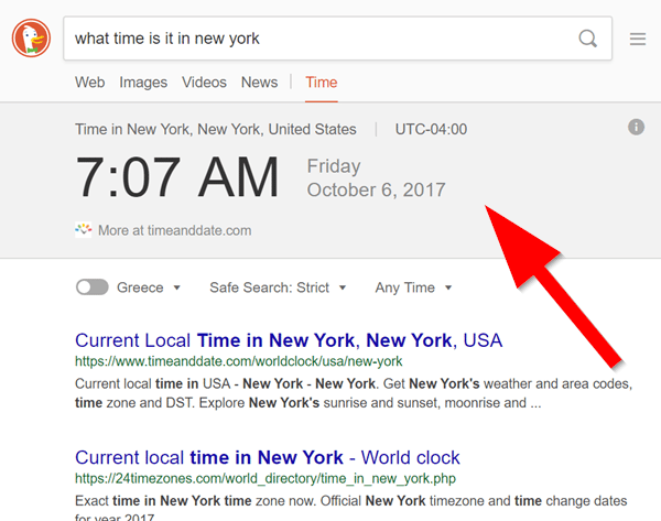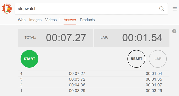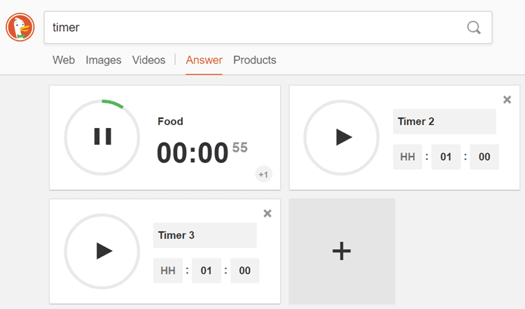 Για να πάρουμε μια ιδέα για το τι μπορεί να κάνει η DuckDuckGo, θα αναφέρουμε για αρχή τη δυνατότητα χρονομέτρου.