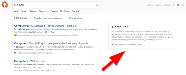Επιπλέον, η απάντηση που δίνει το DuckDuckGo βρίσκεται χωριστά από τα υπόλοιπα αποτελέσματα, και μπορούμε κάλλιστα να την αγνοήσουμε αν δεν μας ενδιαφέρει.