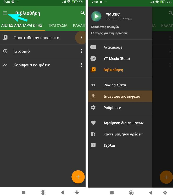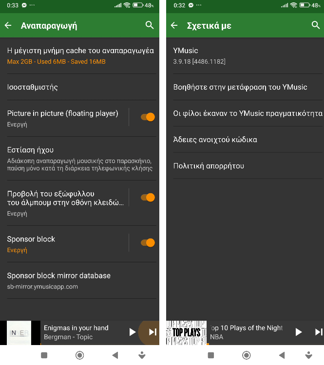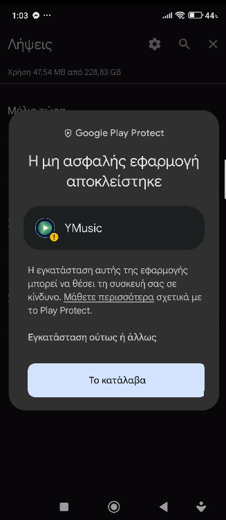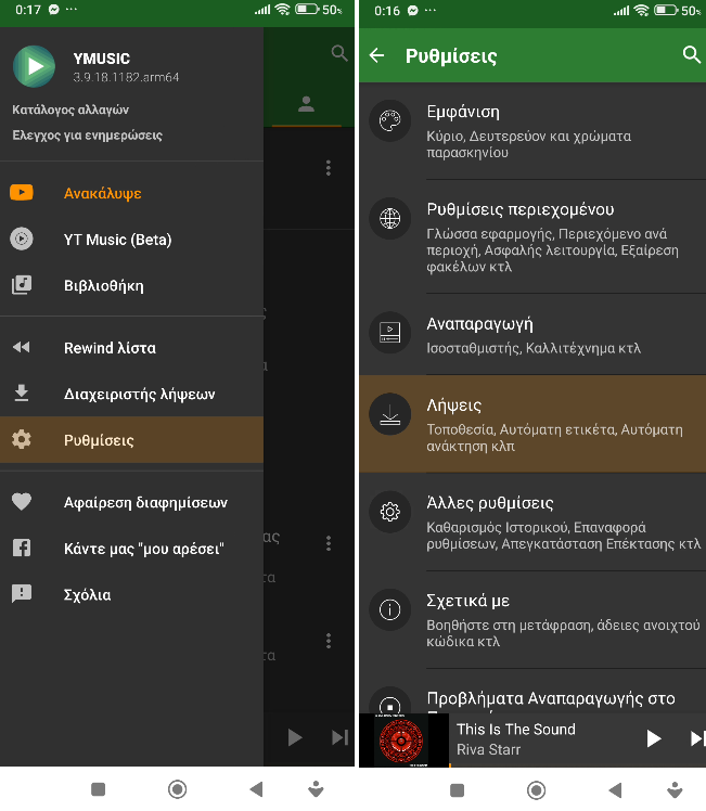 Εναλλακτικά, αν είναι ζωτικής σημασίας να έχουμε συνεχή και καθολική πρόσβαση στα αρχεία μουσικής που κατεβάζουμε, ή να τα ανοίγουμε με άλλον player, μπορούμε να χρησιμοποιούμε και το πολύ μικρό apk Ymusic που περιγράφουμε στην τελευταία ενότητα.