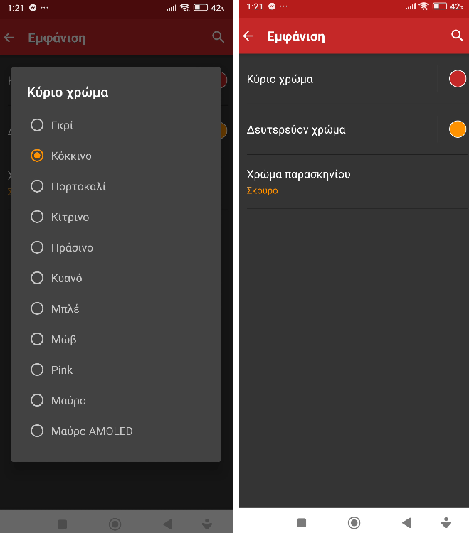 Επίσης, από τις Ρυθμίσεις – Εμφάνιση, μας επιτρέπει να αλλάξουμε και το χρώμα από πράσινο που είναι η προεπιλογή, σε ό,τι άλλο μας αρέσει.