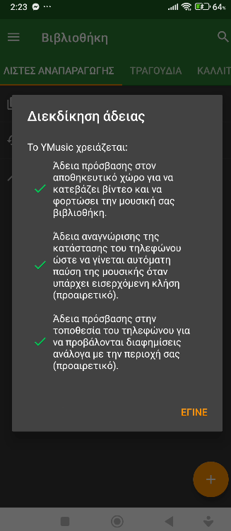 Από εκεί μετά, αφού δώσουμε τις τρεις σχετικές άδειες, είμαστε έτοιμοι για μουσική στο κινητό χωρίς περιορισμούς. Η υποχρεωτική είναι μόνο ή πρώτη.